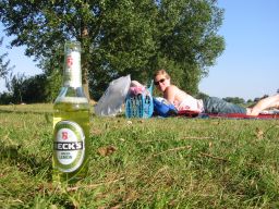 Und wieder Oortkaten (diesmal richtig geschrieben): Suse und ich machen den Feierabend-Grill und das Geburtstagsgeschenk muss sich bewähren. Das tut es auch wunderbar, ich schwimme und Suse latscht auf ihre teure Esprit-Brille - toll....