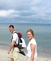 Nixe Peggy und Vollmatrose Felix besuchen uns, ist halt so ne Sache mit diesen Kärtchen an Ballons zu Hochzeiten - manche kommen an. Also machen wir einen Alstertörn mit einem Centaur und werden alle richtig nass, Felix muss schon etwas Seglerkönnen zeigen, aber alles geht gut! Dann turbo-lenten Ausflug nach Boltenhagen, die beiden im eigenen Porsche, wir hinterher... Alles in allem ein schöner Tag am Meer, trotz mancher Wolke an Himmel+Boden...14 Juli 2005