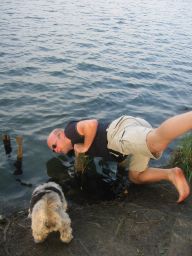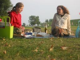 Conny, Jessie, Suse und ich geniessen den Freitag am See bei Oortkaten. Ich habe die Flaschen zur Kühlung in den See geworfen: Erstens zu tief reingehauen, zweitens war der See nicht kalt genug..