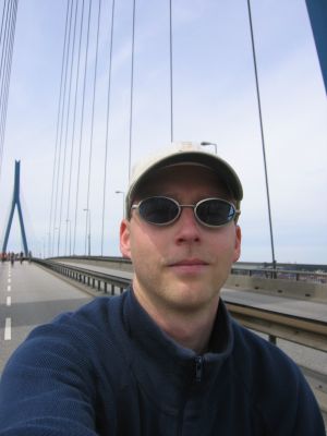 ADFC-Radtour über die Köhlbrandbrücke:Wie ich haben die meisten sicher auch wegen des Radfahrgedankens mitgemacht - schließlich sind die Radwege und die Vorbereitung der Autofahrer auf ein Miteinander äusserst mangelhaft - hier wird man noch zünftig umgekegelt, wenn man nicht den 50cm breiten, wurzeldurchzogenen Radweg benutzt.