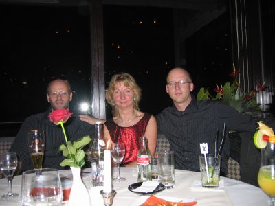 Oma hat Geburtstag und alle kamen. Wir schenken die Keramik-Gieskanne und Blumen. Abends sind wir dann mit den Eltern ins Neptun: Da ist echt alles wie früher - die Stühle, Tische, die Goldfäden über der Bar; Mutti sagt, sogar den Kellner kennt sie noch... Aber es ist Tanznacht und Gronaus und die Eltern vergnügen sich, Suse und ich schauen zu und genießen die tolle Sicht auf die Mole und Hafeneinfahrt: