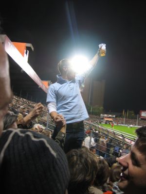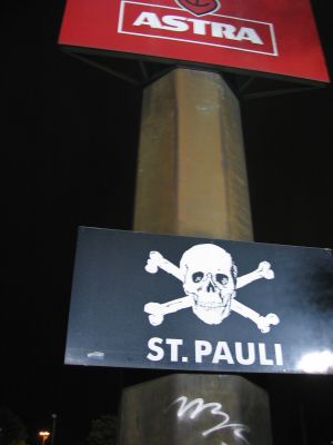 Der Freitag ist der Tag der Premieren: Ich mit TT beim Saaaaaankttt Pau-liiiiihi, 1:0 gegen Mönchengladbach II, nunja, aber die Leute waren doch recht unterhaltsam: Der Herr aufm Foto machte den Antreiber und gab ne Parole vor; er wurde dann auch mit "Du - hast - die Haare schön, du hast die Haare schön" bedacht, dann auch mit " Du hast den Kragen stehn!".