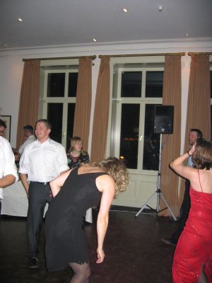 Auf dem feinen Sülberg ging es gut zur Sache, wir haben dann ab 00:00 Uhr nochmal Gas gegeben bis gegen 4:00. Der DJ hatte sogar Keimzeit dabei, aber sonst war es eher die Bon-Jovi-CCR-Melissa-Ethridge-Weather-Girls-SCHEISSE, die immer auf Hochzeiten etc. läuft - aber zum Glück ist ja nach dem 6.Bier alles egal. 2-Gänge-Menu und Dessert-Buffet waren Spitze und im Sommer muß der Ausblick der beste in Hamburg sein.