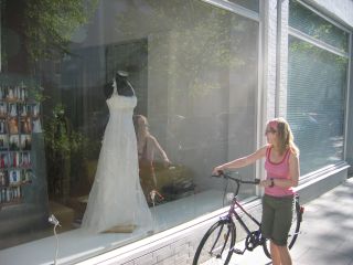 z.B. am Lädchen von Alla Anderse, wo Suse ein Hochzeitskleid prüft.