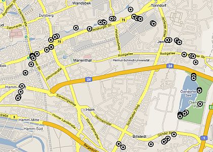 Herr S. und ich mit Hilfe von ganz oben (so 31000km): GPS-tracking bei der Tour durch Billstedt und rund um Öjendorf.