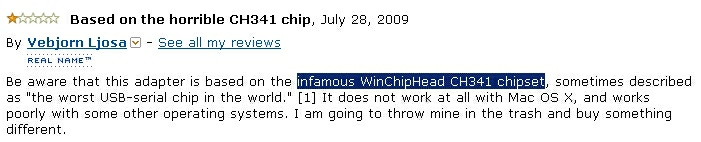 Und da kommt der "CH341". Nach diversen Suchattacken kommen dann immer enttäuschte Benutzerstimmen, speziell auch zur Anwendung mit Mac OS X raus:
