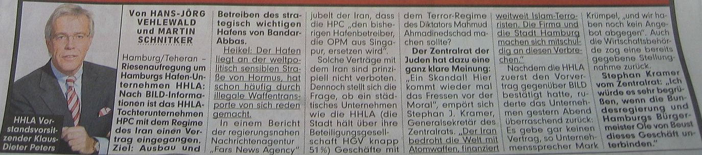 # Empörung über Hafenprojekt der HHLA im Iran - Welt 16.1.
