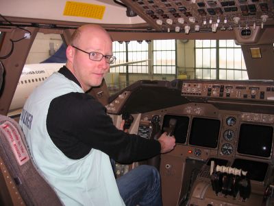 Die absolute Serviceorientierung der Lufthansa zeigt sich auch, als extra die "Greifswald" in die Wartungshalle gefahren wird, damit wir beiden Nordlichter uns heimisch fühlen - danke! Die Cockpits von Airbus und Boing kann man übrigens an dem warmen Schafsfell unterscheiden, welches alle Boing-Sitze haben.