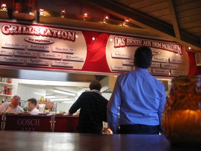 Im SPO-Dorf und auch Bad ist es nicht so besonders aufregend, es gibt eher traditionelle Touri-Lokale und einige Fischhütten, aber irgendwie hat es uns nicht besonders beeindruckt. Da war der Besuch in Tönning auf dem Rückweg schon wesentlich charmanter: Am alten Hafen sind jede Menge einladende Fischlokale und Cafes mit Original-Friesentorte und draussen Kännchen: