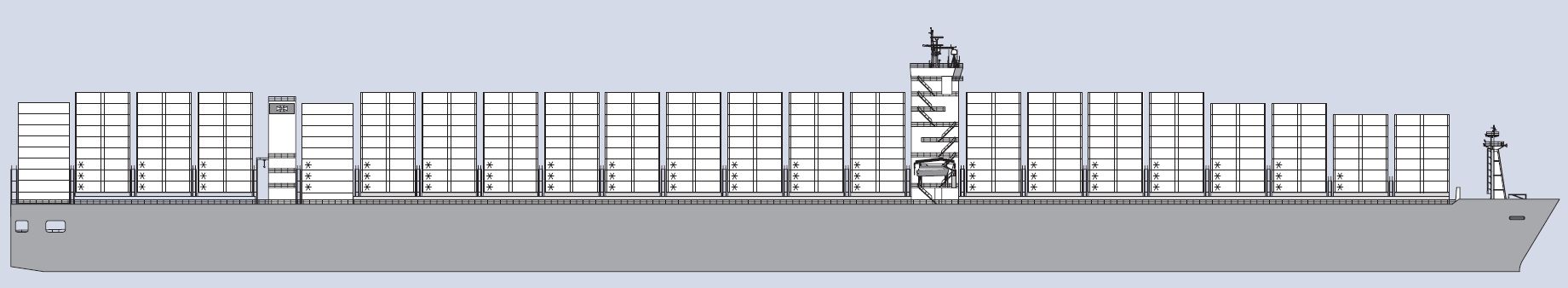 14000-TEU-Klasse: Gut zu sehen ist die Innovation, das Maschinenhaus und