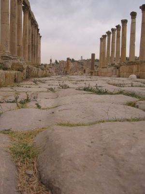 Gerasa ist eine Überraschung: Ein riesiges Areal mit Agora, Hauptstrasse und Kreuzung, Nympheum und Hippodrom. Der aktuelle Zustand lässt sehr gut erfahren, wie es damals ausgesehen haben muss - sogar die Rillen der römischen Wagen sind noch zu sehen.