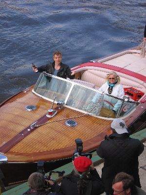 Manche Dialoge sind ungewollt lustig: Beim Bäcker "So, einmal Ihre Latte bitte!" "Äh, danke schön!" Andere Fragen bedingen ihre Antwort: Was soll die Fleischwarenfachverkäuferin auf die Frage "Ist das Mettbrötchen frisch?" anderes antworten als "Ja, eben frisch geschmiert!"? Und den Vater dieser ganzen Alltagswitze treffen Harald und ich am Sandtorhöft zufällig: Michael M. auf einer Riva wirbt für einen Brause ähnlichen Namens. Ich möchte, glaube ich, kein Pressefotograf sein, so entwürdigende Szenen spielen sich ab.