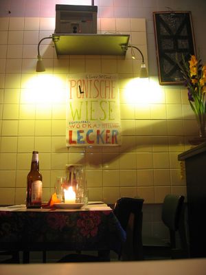Die Jungs gehen aus and about: "Kuchnia" macht osteuropäische Spezialitäten aller Art: Pelmeni, Bigos, Blini, Pierogi, Sauerkrauteintopf und ca. 100 Sorten Vodka (Birken-, Kiefern-, Zlatogor-, Pan Tadeuz-Vodka)